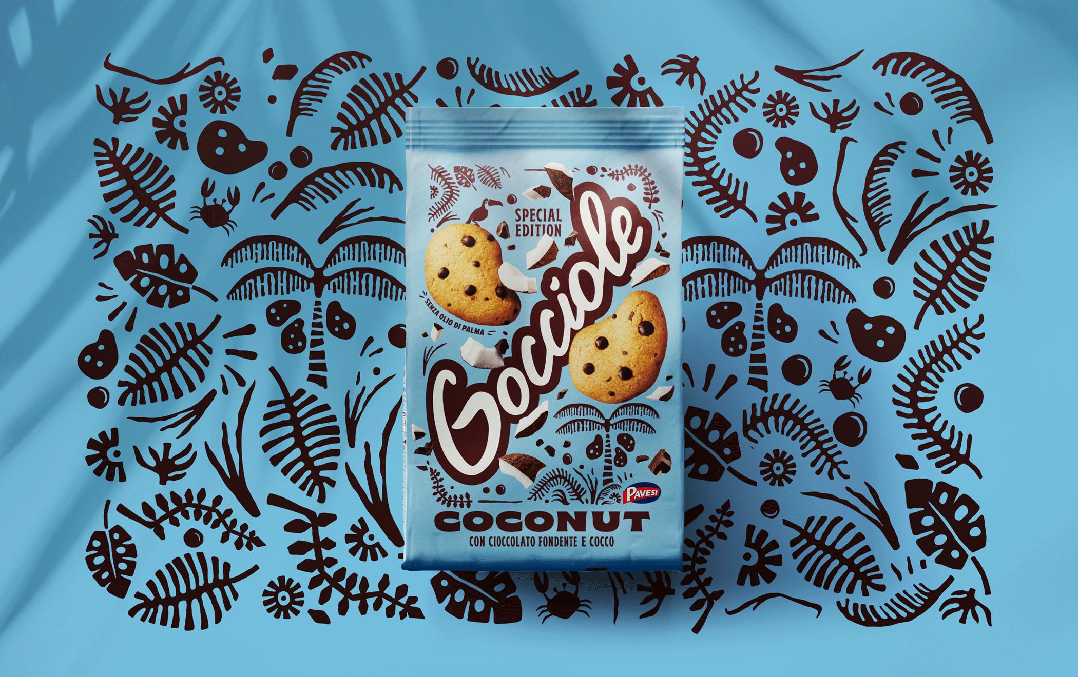 Redesign a new, fresh visual for a very special edition, “Coconut Gocciole”, by keeping a link with the classic range but with an own bold personality.