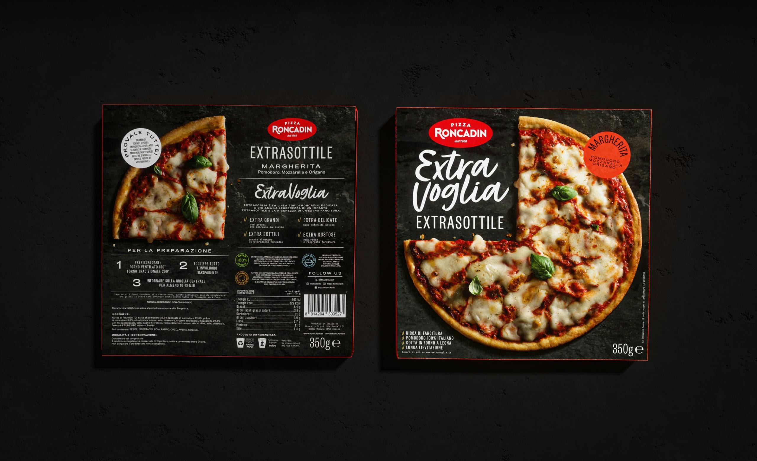 The complete restyling of the Extravoglia range, which is the core line by Roncadin. The challenge was to enhance the lightness of the dough, but at the same time the richness and quality of the filling.